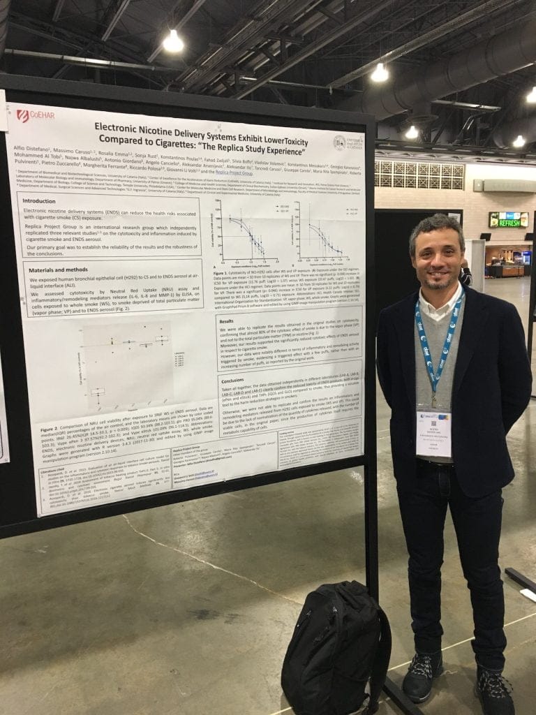 The CoEHAR presence at the meeting highlights the overall impact of the studies carried out by the research center of Catania. Focus of the presentation, the latest results obtained by the Replica project, an international research group which independently relocated three relevant studies in the cytotoxicity and inflammation induced by cigarette smoke and ENDs aerosol.
