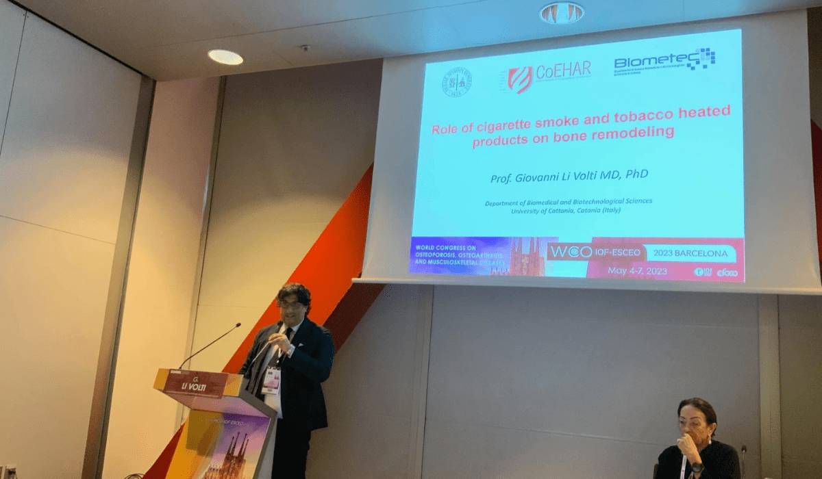 The Director of CoEHAR, prof. Giovanni Li Volti briefed the audience regarding the “Role of cigarette smoke and tobacco heated products on bone remodeling”.